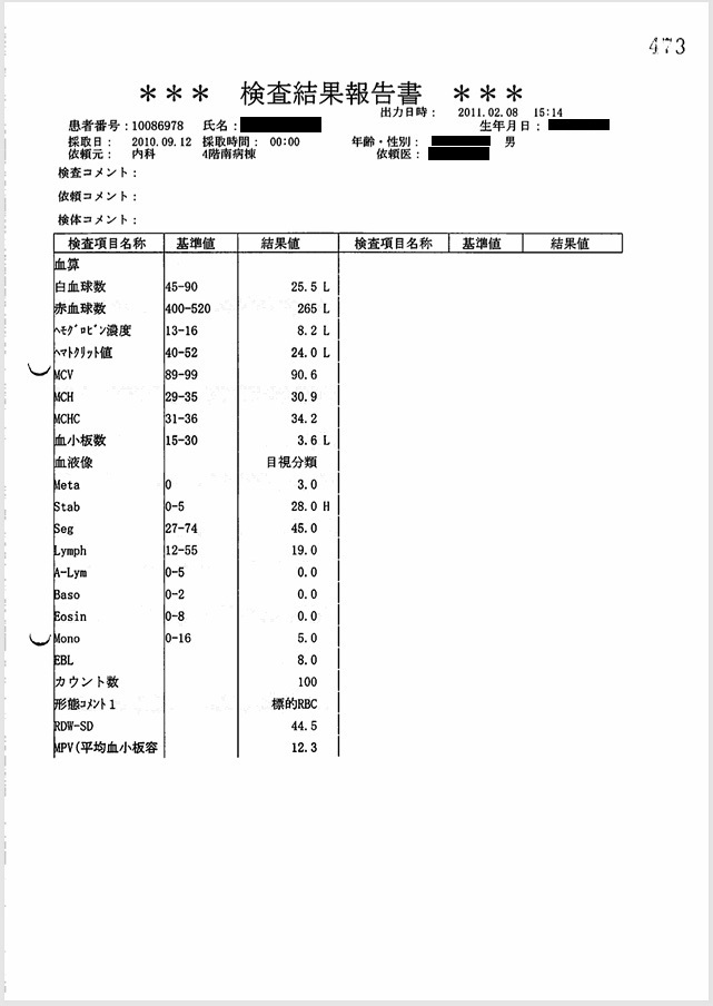 証拠:血液検査データ