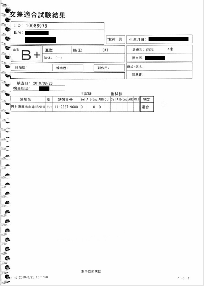 - 8月26日:Hb 11.1 g/dlで輸血開始